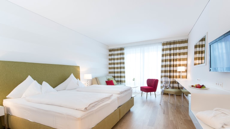 110 Großzügig gestaltete Zimmer alle mit Balkon, 9 Suiten und die NEUE und einzigartige Sunset Suite im Badehaus. Zimmer mit Blick zum Wörthersee oder zur Werzerpromenade. Alle Zimmer mit Balkon und Klimaanlage für die heißen Tage, Minibar, Bad mit Fußbodenheizung, Bad mit Badewanne.