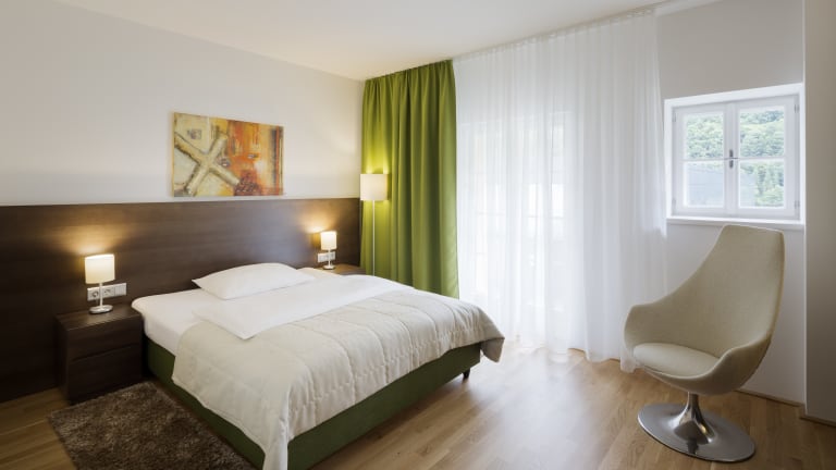 Das Hotel bietet seit Oktober 2013 insgesamt 49 Komfortzimmer (28 Doppelzimmer, 21 Einbettzimmer). Alle Zimmer sind modern gestaltet und laden zum Wohlfühlen ein. Sie sind ausgestattet mit Flat-TV, kostenloses Internet, Telefon, Safe und Minibar, teilweise Balkon und Terrasse mit herrlichen Donaublick. Das Hotel verfügt über 3 barrierefreie Zimmer. Der gesamte Hotelbereich ist barrierefrei erreichbar.