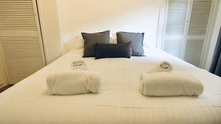 Die Ferienwohnung besteht aus zwei Schlafzimmern, einem Wohnzimmer und einer voll ausgestatteten Küche, die einen Kühlschrank und einen Wasserkocher umfasst. Zudem sind ein Badezimmer mit Dusche und Haartrockner vorhanden. Handtücher und Bettwäsche werden gestellt.