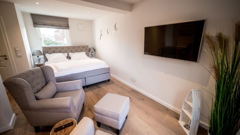 Die Unterkunft Westdüne bietet eine heimelige Ferienwohnung, die mit einem Schlafzimmer und einem Badezimmer ausgestattet ist. Zu den Annehmlichkeiten gehören eine voll ausgestattete Küche, ein Essbereich und eine Terrasse mit Gartenblick. Haustiere sind willkommen, es können jedoch Gebühren anfallen. Bitte beachten Sie, dass Junggesellen- und Junggesellinnenabschiede nicht gestattet sind.