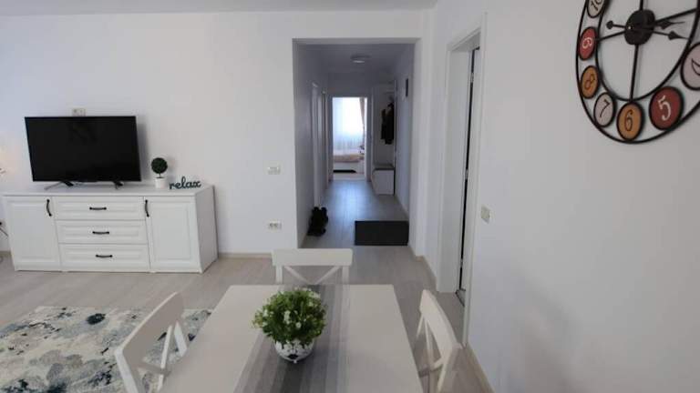 Das White Apartment Gura Humorului, Bucovina, Voronet bietet kostenlosen Wifi-Zugang und beeindruckenden Bergblick. Die Ferienwohnung verfügt über einen Balkon mit Stadtblick, eine Terrasse sowie kostenlose Privatparkiermöglichkeiten.