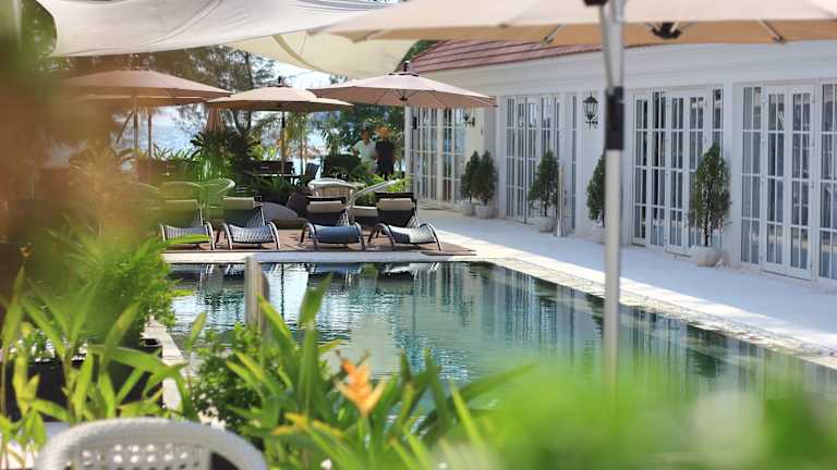 Das White Boutique Hotel und Residences bietet kolonialstil Unterkunft mit Blick auf den Golf von Siam. Das Hotel verfügt über einen Aussenpool, der aus natürlichem Quarz und Andesitsteinen besteht. Es werden entspannende Massagen angeboten und wöchentliche Aktivitäten, darunter Live-Musik-Events, finden statt.