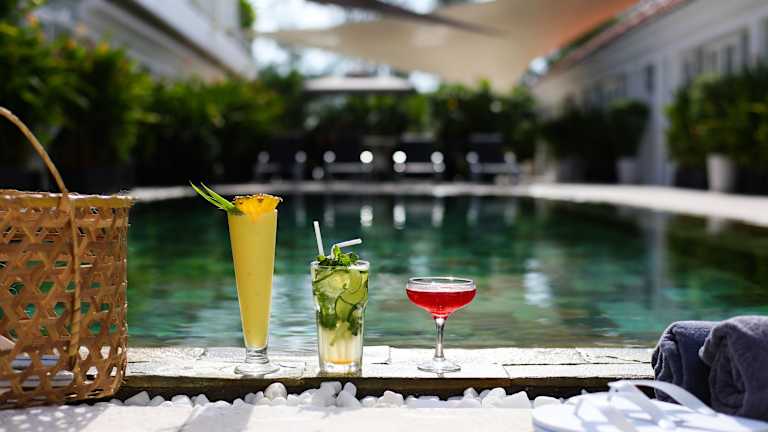 Das hoteleigene Restaurant White serviert eine Auswahl an europäischer, kambodschanischer und Fusionsküche, zubereitet mit frischen Zutaten und gefiltertem Wasser. Die klimatisierte Bar bietet eine Auswahl an alkoholischen Getränken wie Wein sowie Smoothies und Fruchtsäfte.