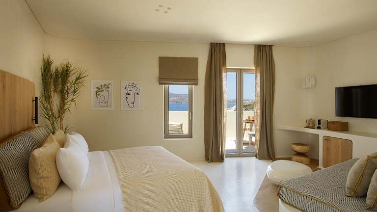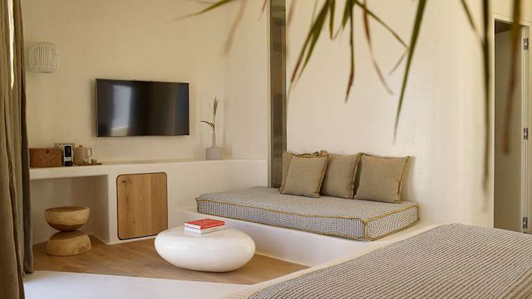 Die klimatisierten Zimmer in der White Pebble Suites sind mit einem Schreibtisch, einer Kaffeemaschine, einem Kühlschrank, einer Minibar, einem Safe, einem Flachbild-TV, einer Terrasse und einem eigenen Badezimmer mit Dusche ausgestattet. Alle Zimmer verfügen über Bettwäsche und Handtücher.