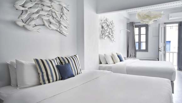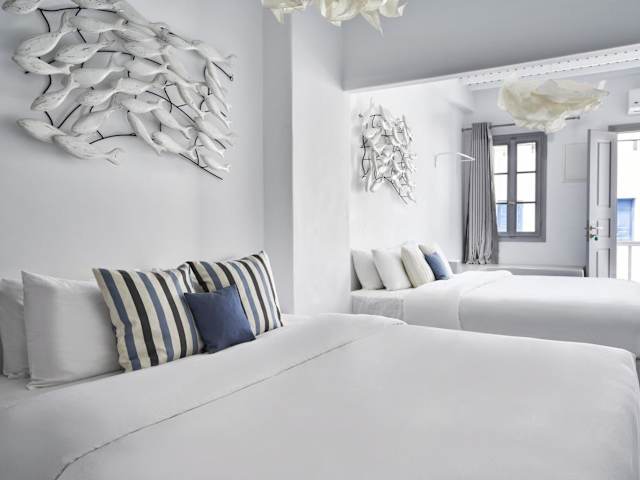 Die Whitelist Suite Fabrika in Mykonos Town bietet eine komfortable Unterkunft mit Klimaanlage. Die Anreise ist ab 16:00 Uhr bis 02:00 Uhr möglich, der Check-out muss bis 10:00 Uhr erfolgen. Die Unterkunft ist für Nichtraucher und Haustiere auf Anfrage erlaubt. Ein Flughafentransfer kann gegen Gebühr organisiert werden. Weitere Dienstleistungen umfassen Autovermietung und Waschservice.