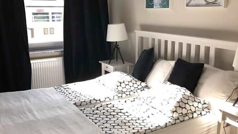 Die Ferienwohnung verfügt über 2 Schlafzimmer, ein Wohnzimmer mit Flachbild-TV sowie eine gut ausgestattete Küchenzeile mit Kühlschrank und Geschirrspüler. Zudem gibt es ein Badezimmer mit Dusche. Handtücher und Bettwäsche sind inbegriffen, und die Wohnung bietet einen Balkon mit Stadtblick.