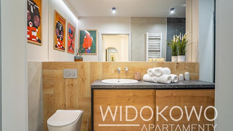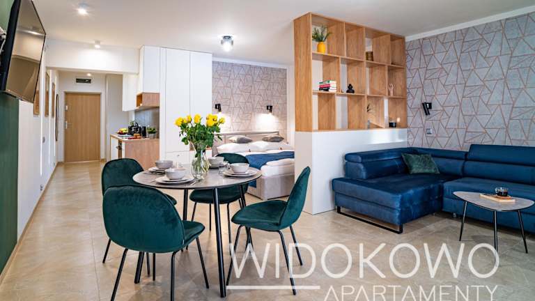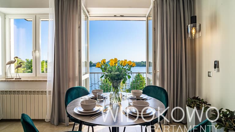 WIDOKOWO Apartamenty bietet Übernachtungsmöglichkeiten mit Klimaanlage und kostenlosem Wifi. Die Unterkunft verfügt über eine Terrasse mit Seeblick, einen Sitzbereich und einen Flachbild-TV. Gästen stehen eine voll ausgestattete Küchenzeile sowie ein eigenes Badezimmer mit Dusche und kostenlosen Pflegeprodukten zur Verfügung. Die Unterkunft wird von einem privaten Gastgeber geführt und ist eine Nichtraucherunterkunft.