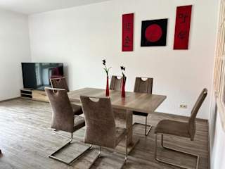 Die Ferienwohnung umfasst zwei Schlafzimmer, ein Badezimmer, eine voll ausgestattete Küche sowie einen Essbereich. Zur Ausstattung gehören Bettwäsche, Handtücher, ein Flachbild-TV mit Kabelkanälen und eine Terrasse mit Bergblick. Für zusätzlichen Komfort können Handtücher und Bettwäsche gegen Aufpreis bereitgestellt werden.