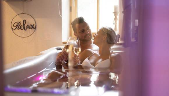 Das Ferienhaus verfügt über zwei Schlafzimmer, ein Wohnzimmer und eine voll ausgestattete Küche mit Kühlschrank und Kaffeemaschine. Es bietet zusätzlich zwei Badezimmer mit Dusche und Whirlpool. Handtücher und Bettwäsche werden bereitgestellt. Vor Ort ist eine Terrasse vorhanden.