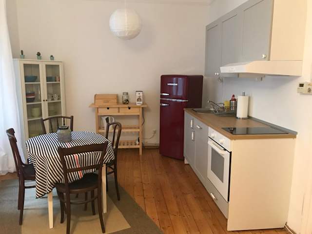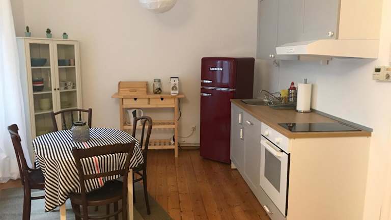 Die Ferienwohnung besteht aus einem Schlafzimmer, einem Wohnzimmer und einer voll ausgestatteten Küche, die mit einem Kühlschrank und einer Kaffeemaschine ausgestattet ist. Es gibt ein Badezimmer mit Dusche und Haartrockner. Handtücher und Bettwäsche werden bereitgestellt. Die Wohnung ist mit Heizung, WLAN und weiteren modernen Annehmlichkeiten ausgestattet.