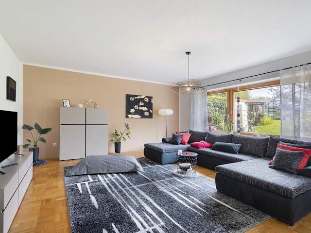 Die Ferienwohnung verfügt über zwei Schlafzimmer, ein Badezimmer sowie eine voll ausgestattete Küche. Ausserdem sind Bettwäsche, Handtücher sowie ein TV mit Satellitenkanälen vorhanden. Die Terrasse bietet einen schönen Blick auf den Garten.