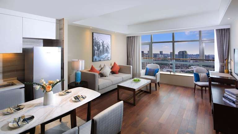 Die Unterkunft WIFC SUITES bietet ein Fitnesscenter, eine Gemeinschaftslounge sowie ein Restaurant. Zur Ausstattung gehören zudem ein Zimmerservice und eine durchgehend besetzte Rezeption. WLAN ist kostenlos und die Gäste können Stadtblick genießen.