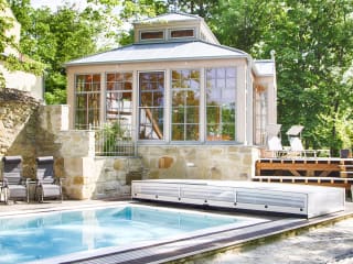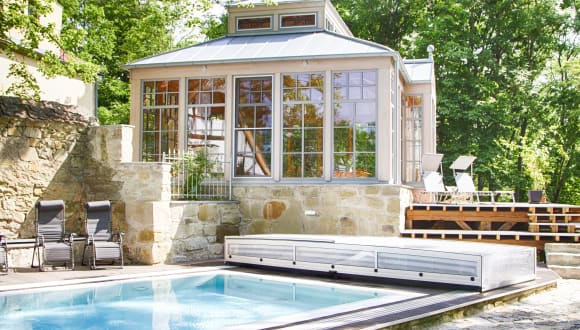 Wald-Wein-Whirlpool – Schlossurlaub der besonderen Art Entscheiden Sie sich für einen spannenden Urlaub zwischen dem Gestern, d.h. komfortabel Wohnen im Schloss, oder dem Heute, das sind neue Ferienhäuser aus Holz. Lernen Sie den romantisch auf einem bewaldeten Hügel gelegenen Wildberghof kennen. Wohnen Sie dort in komfortablen Ferienwohnungen, Ferienhäusern oder großzügigen Gästezimmern im Schlossturm.