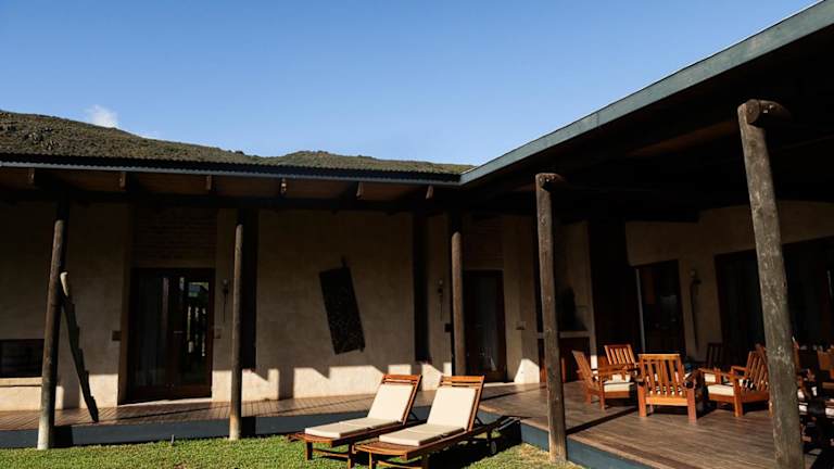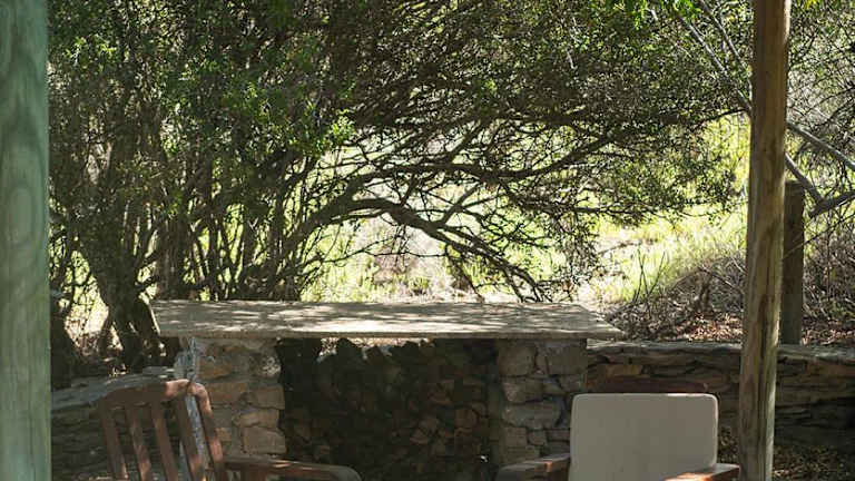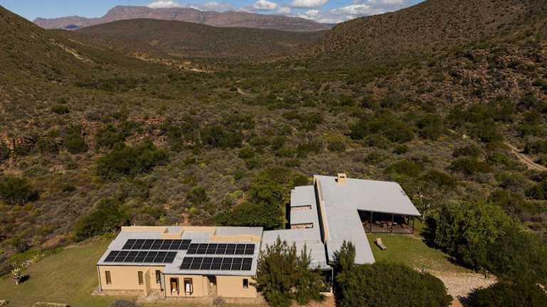 Die Wildschutzkloof in die veldt lodge bietet klimatisierte Übernachtungsmöglichkeiten mit einer Terrasse und einem einladenden Garten. Die Villa ist rustikal und heimelig eingerichtet und eignet sich besonders für Familien oder Gruppen.