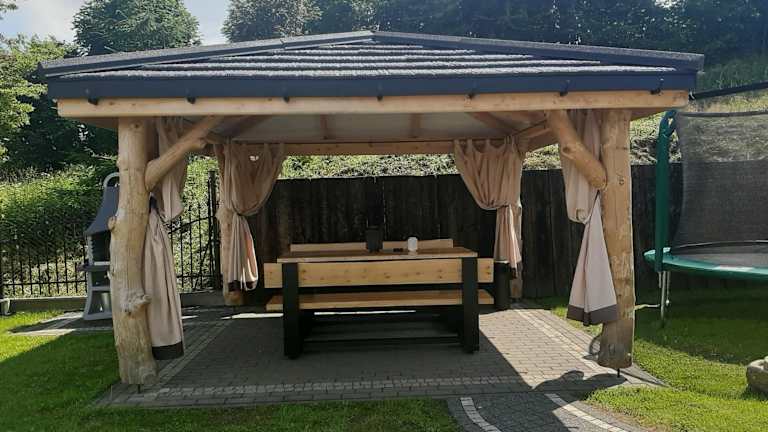Die Ferienwohnung verfügt über eine voll ausgestattete Küche mit Kühlschrank und Kaffeemaschine, sodass Selbstverpflegung möglich ist. Es gibt Grillmöglichkeiten für Außenaktivitäten.