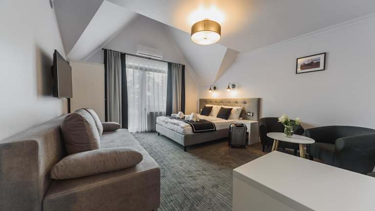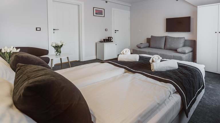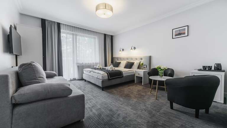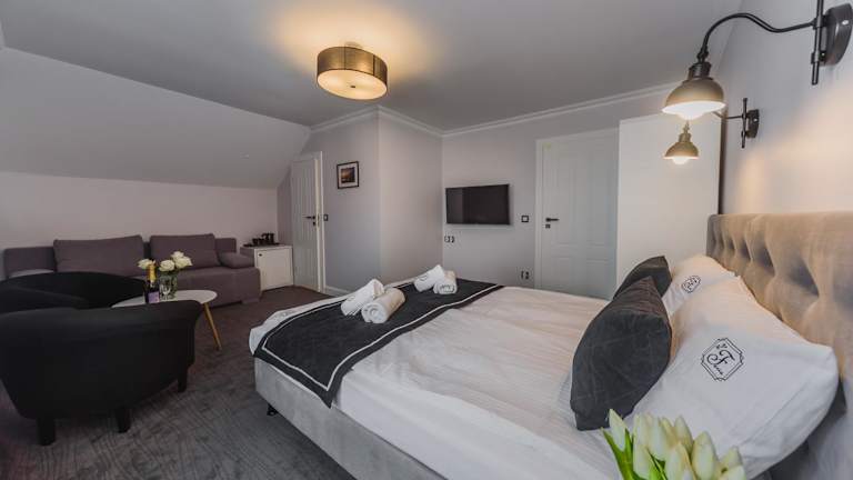 Die Zimmer in der Willa Feria sind mit einem Flachbild-TV, einer Minibar und einem Wasserkocher ausgestattet. Jedes Zimmer verfügt über ein eigenes Badezimmer, das mit kostenlosen Pflegeprodukten, einem Haartrockner und einer Dusche ausgestattet ist.