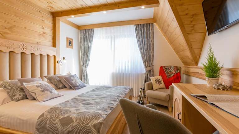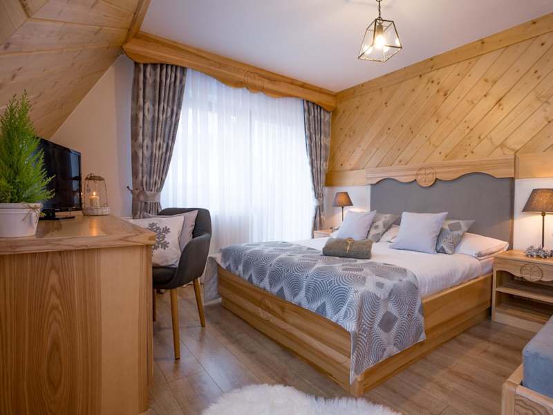 Die Zimmer in der Willa Góralsko Riwiera sind hell und in warmen Farben gehalten. Jedes Zimmer verfügt über Holzmöbel, ein Bad mit Dusche, einen Kühlschrank sowie einen Wasserkocher.