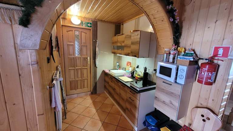 Es gibt eine Gemeinschaftsküche, die den Gästen die Möglichkeit bietet, eigene Mahlzeiten zuzubereiten. Für das leibliche Wohl stehen Grillmöglichkeiten zur Verfügung, die zu geselligen Abenden im Freien einladen.