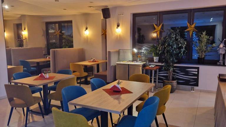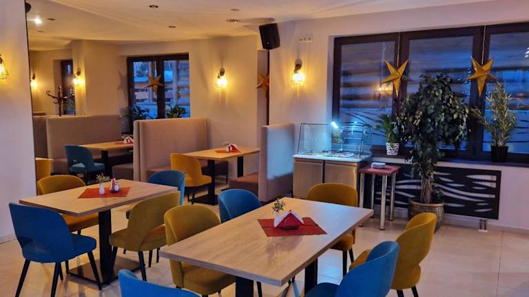 Das Frühstück wird im hauseigenen Ostoja Restaurant serviert, das in der Saison polnische und regionale Gerichte anbietet. Das Restaurant verfügt über einen Kamin, eine Bar und einen grossen LCD-Sat-TV. Snacks sind ebenfalls verfügbar.