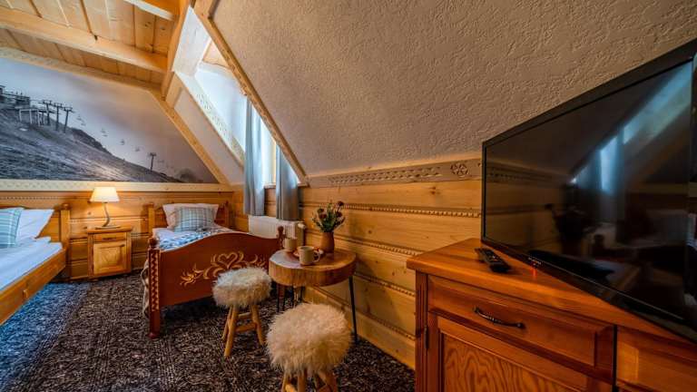 Die Unterkunft Willa Pod Niebem befindet sich in der Nähe von Zakopane in der Region Kleinpolen, unweit von Gubałówka. Der Bahnhof Zakopane ist 14 km entfernt und Aqua Park Zakopane 15 km.