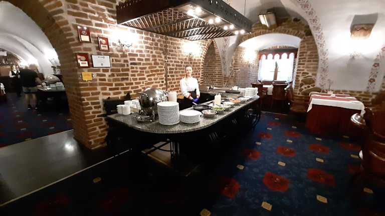 Im Restaurant Refektarz im Hotel Zamek Ryn werden schmackhafte Speisen angeboten, und morgens können Gäste sich an einem Frühstücksbuffet bedienen. Es besteht die Möglichkeit, spezielle Ernährungsbedürfnisse auf Anfrage zu berücksichtigen.