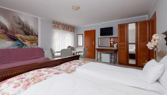 Die Willa Rawia befindet sich im Zentrum des malerischen Badeortes Rewal, nur 100 Meter vom Sandstrand entfernt. Der Bahnhof Rewal ist 700 Meter entfernt.
