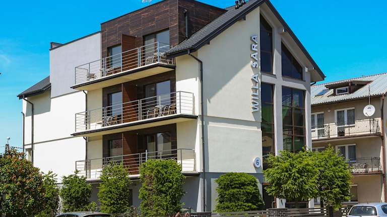 Willa Sara Karwia ist eine Unterkunft mit gemütlichen Übernachtungsmöglichkeiten, die eine Terrasse oder einen Balkon bieten. Die Einrichtung umfasst einen Flachbild-TV, kostenloses Wifi und einen gepflegten Garten mit Grillmöglichkeiten. Ein Privatparkplatz ist vor Ort vorhanden.