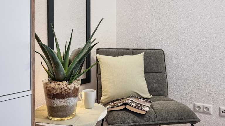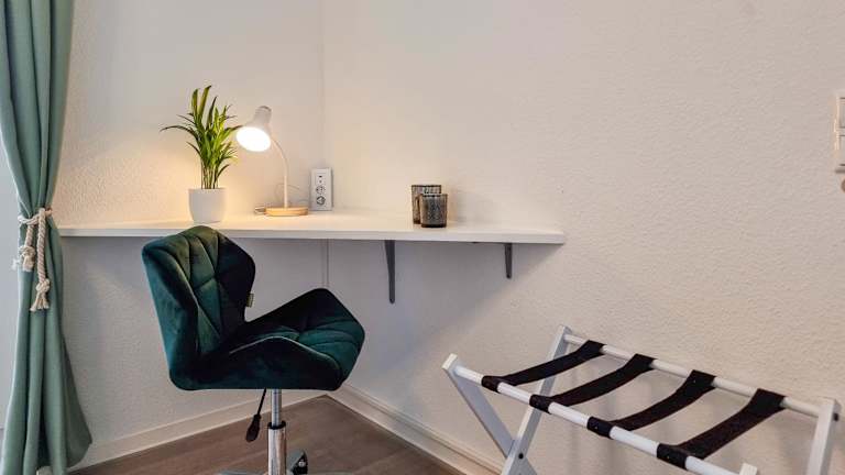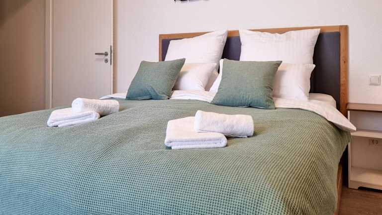 Die Ferienwohnung besteht aus einem Schlafzimmer, einem Wohnzimmer und einer voll ausgestatteten Küche mit Kühlschrank und Kaffeemaschine. Zudem gibt es ein Badezimmer mit Dusche und kostenlosen Pflegeprodukten. Handtücher und Bettwäsche werden bereitgestellt.