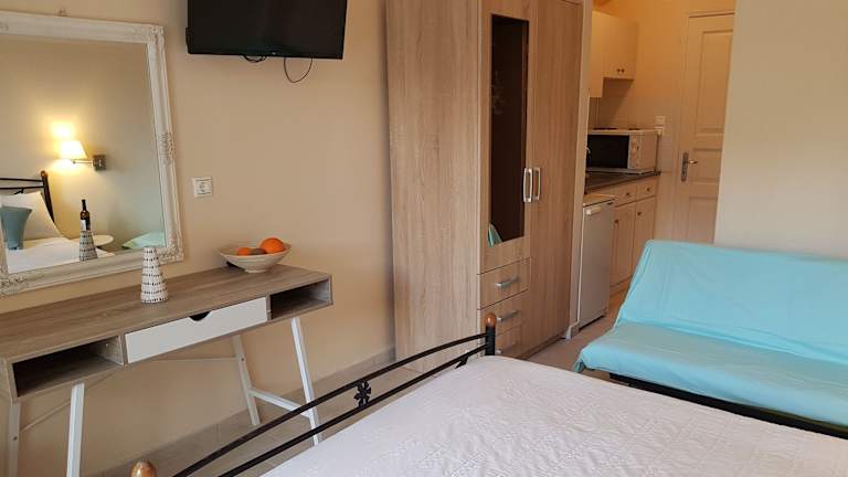 Die Unterkunft bietet Zimmer, die mit Klimaanlage, einer voll ausgestatteten Küche und einem Essbereich, einem Flachbild-TV sowie einem eigenen Badezimmer mit Dusche und kostenlosen Pflegeprodukten ausgestattet sind. Einige Wohneinheiten verfügen über einen Balkon oder eine Veranda/Patiо mit Blick auf die Stadt.