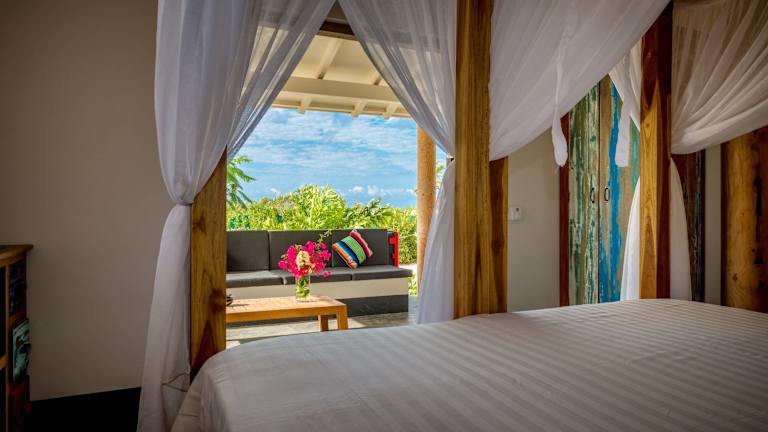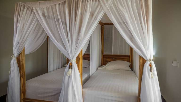 Alle Zimmer sind klimatisiert und ausgestattet mit einem Patio oder einer Veranda, die einen Blick auf den Garten bieten. Die Zimmer verfügen über einen Geschirrspüler, Kühlschrank, Wasserkocher, Dusche, Haartrockner, Schreibtisch und Kleiderschrank. Jedes Zimmer hat ein eigenes Bad und eine Küche.