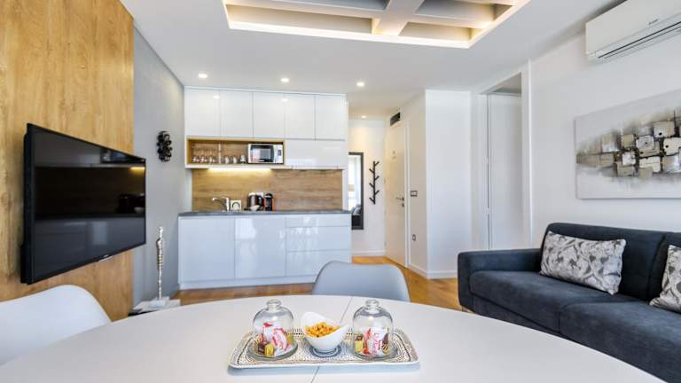 Jede Wohneinheit ist mit einer voll ausgestatteten Küche, einem Kühlschrank und einer Mikrowelle ausgestattet. Zudem verfügen die Apartments über einen Safe, einen Kabel Flachbild-TV, Bügelmöglichkeiten, einen Kleiderschrank sowie einen Sitzbereich mit einem Schlafsofa. Das eigene Badezimmer bietet eine Badewanne oder Dusche, kostenlose Pflegeprodukte und einen Haartrockner.