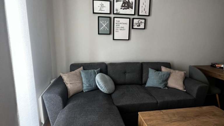 Die Ferienwohnung verfügt über einen Balkon mit Blick auf die Berge, 1 Schlafzimmer, ein Wohnzimmer sowie einen Flachbild-TV. Die gut ausgestattete Küche bietet einen Kühlschrank und einen Ofen. Ein Badezimmer mit Dusche ist ebenfalls vorhanden. Handtücher und Bettwäsche werden zur Verfügung gestellt.