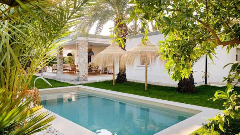 Die Casa con jardín privado para noches de eclipse desde la piscina bietet Übernachtungsmöglichkeiten in einem Ferienhaus, das über einen eigenen Aussenpool, eine Terrasse und einen Garten verfügt. Die Unterkunft ist mit Klimaanlage ausgestattet und bietet einen kostenlosen Privatparkplatz.