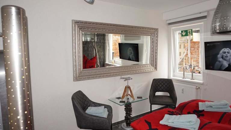 Der Wismarer-Hangar ist eine Ferienwohnung, die in einem historisch wertvollen Gebäude aus dem Jahr 1880 untergebracht ist. Die Unterkunft bietet die Möglichkeit zur Selbstversorgung und verfügt über einen modernen Standard, darunter kostenfreies WLAN und einen Flachbild-TV. Es handelt sich um eine Nichtraucherunterkunft, die nicht für Feiern wie Junggesellenabschiede genutzt werden darf und von einem privaten Gastgeber betrieben wird.