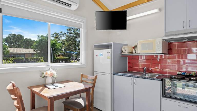 Die Unterkünfte im Wodonga Holiday Park variieren in ihrer Ausstattung. Einige sind mit einem Flachbild-TV und einem DVD-Player ausgestattet. Die Küchen einiger Unterkünfte sind mit einem Backofen, einer Mikrowelle, einem Toaster und einem Wasserkocher ausgestattet. Es gibt auch Nichtraucherzimmer und die Möglichkeit, ein Babybett für kleine Gäste bereitzustellen.