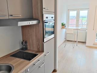 Die Ferienwohnung verfügt über ein separates Schlafzimmer und eine voll ausgestattete Küche, die den Gästen die Zubereitung eigener Mahlzeiten ermöglicht. Der Balkon bietet zusätzlichen Raum zum Entspannen.