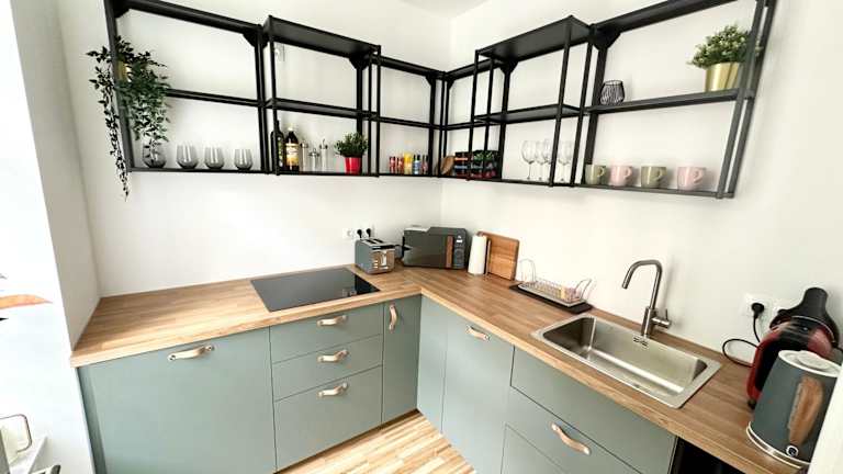 Die Ferienwohnung verfügt über ein Schlafzimmer, eine Küche, die mit einem Kühlschrank und einem Geschirrspüler ausgestattet ist, sowie einem Flachbild-TV und einem Sitzbereich. Das Badezimmer umfasst eine Dusche. Handtücher und Bettwäsche werden zur Verfügung gestellt.