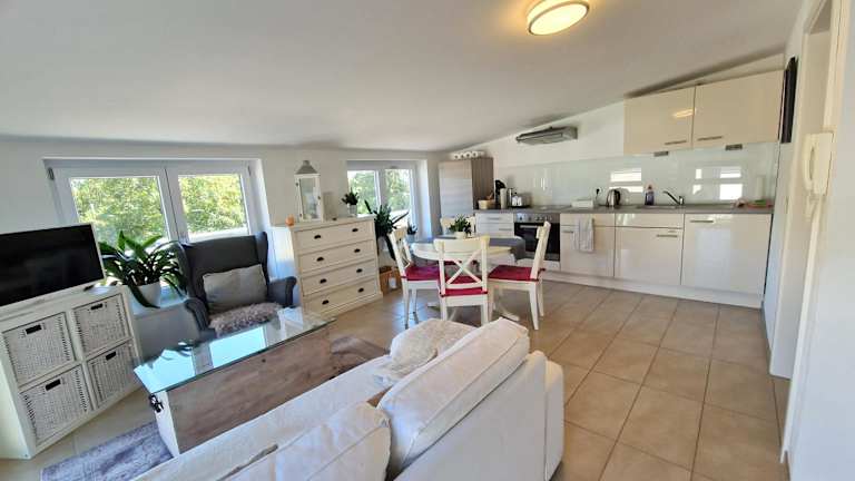 Die Ferienwohnung verfügt über 1 Schlafzimmer, eine Küche mit Kühlschrank und Geschirrspüler, einen Flachbild-TV sowie einen Sitzbereich. Das Badezimmer ist mit einer Dusche ausgestattet, und Handtücher sowie Bettwäsche werden bereitgestellt.