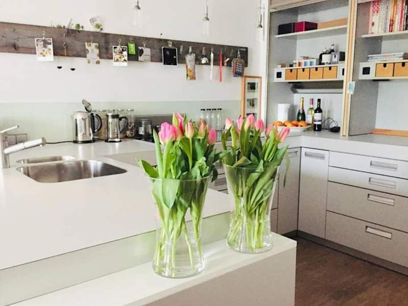 Jede Unterkunft verfügt über eine voll ausgestattete Küche, die mit einem Kühlschrank, Geschirrspüler, Mikrowelle, Herdplatte, Kaffeemaschine und Wasserkocher ausgestattet ist. Ein eigener Essbereich ist ebenfalls vorhanden.