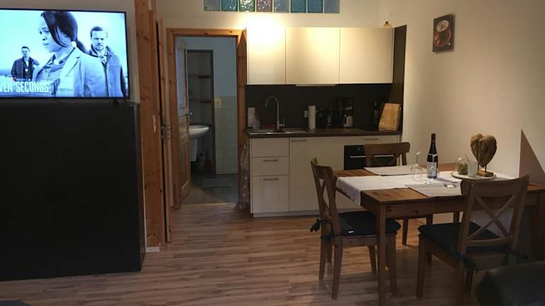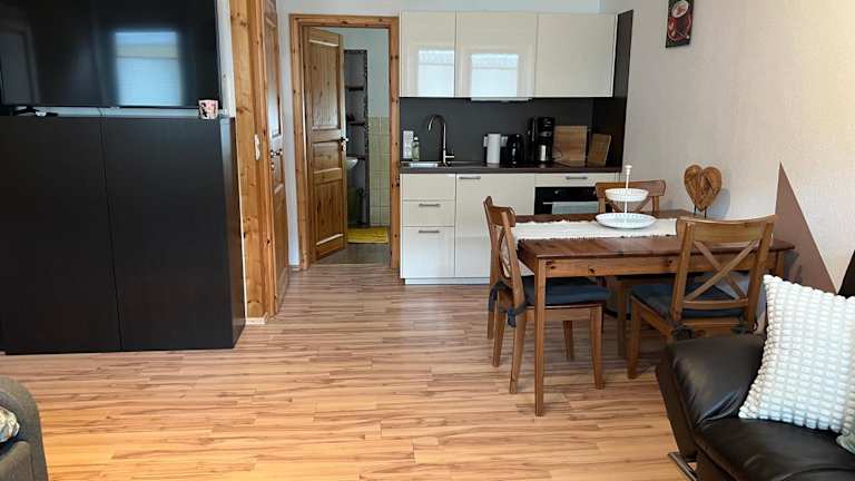 Die Ferienwohnung bietet einen Satelliten Flachbild-TV sowie ein Badezimmer mit Dusche. Die Zimmer sind heimelig und einladend eingerichtet.