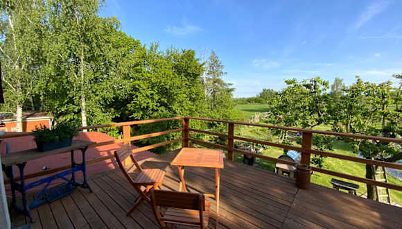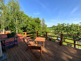 Wohnen im Grünen in der Nähe von Leipzig ist eine helle und einladende Ferienwohnung, die Gästen eine ruhige Atmosphäre inmitten der Natur bietet. Die Unterkunft hat eine Terrasse, die zur Entspannung einlädt. Hinter dem Haus befinden sich Parkiermöglichkeiten für Gäste, die mit dem Auto anreisen.
