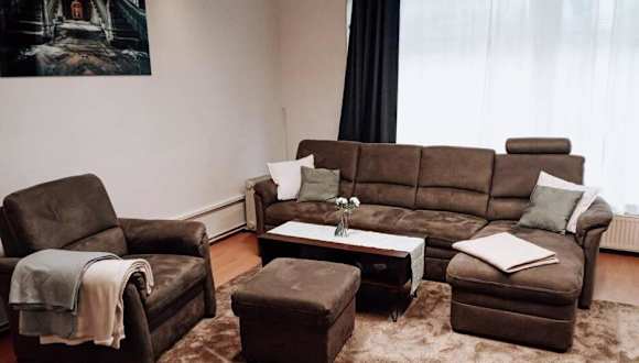 Die Ferienwohnung besteht aus einem Schlafzimmer, einem Wohnzimmer und einer voll ausgestatteten Küche mit Kühlschrank und Kaffeemaschine. Zudem stehen ein Badezimmer mit Dusche und Haartrockner sowie Handtücher und Bettwäsche zur Verfügung.