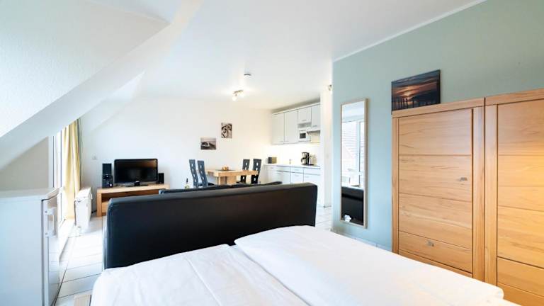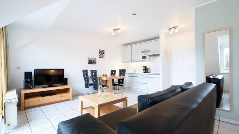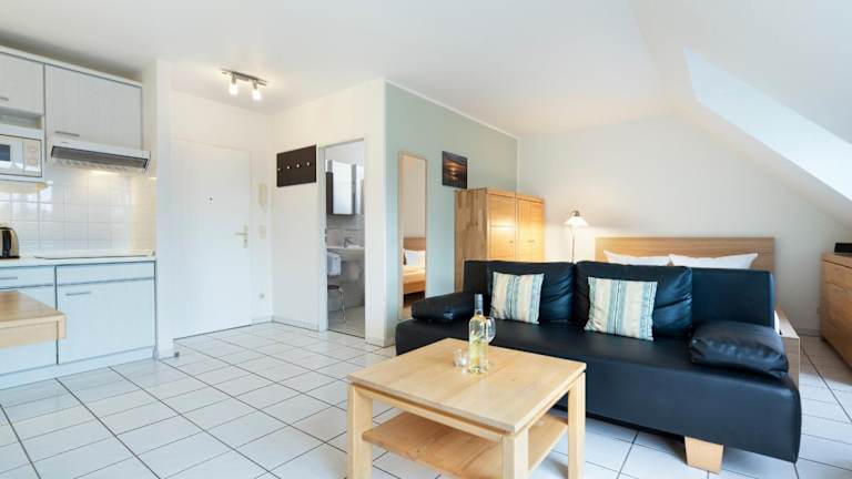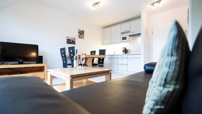 Das Appartement 24 ist ausgestattet mit einem hellen Wohnzimmer und einer voll ausgestatteten Küche, die mit einem Kühlschrank und einer Mikrowelle eingerichtet ist. Handtücher und Bettwäsche werden zur Verfügung gestellt. Das heimelige Ambiente bietet die Bequemlichkeit für entspannte Stunden.