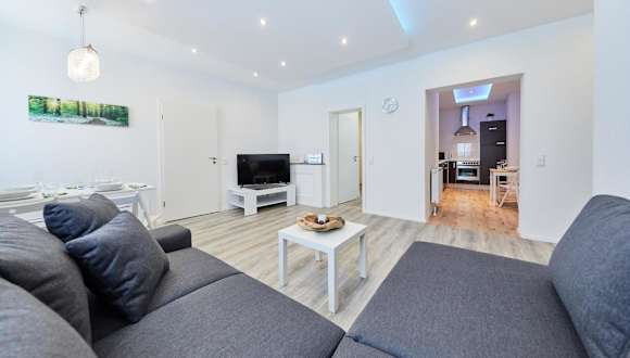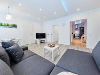 Die Ferienwohnung besteht aus 2 Schlafzimmern, einem Wohnzimmer und einer voll ausgestatteten Küche, die einen Kühlschrank und eine Kaffeemaschine beinhaltet. Zudem gibt es ein Badezimmer mit Dusche und Badewanne. Handtücher und Bettwäsche werden bereitgestellt.