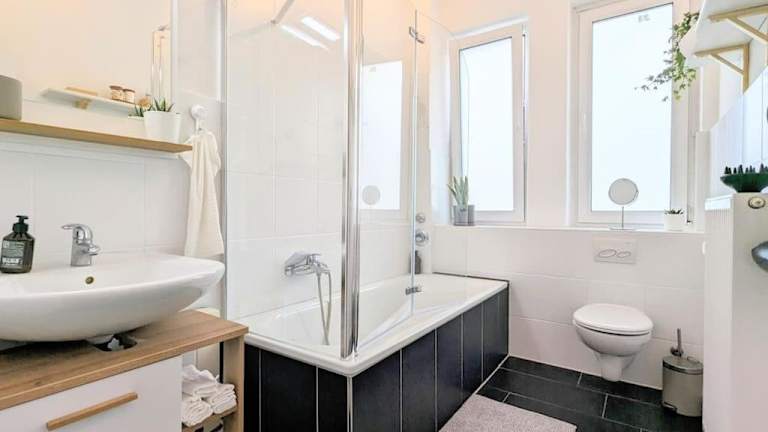 Diese Ferienwohnung besteht aus zwei Schlafzimmern, einem Wohnzimmer und einer voll ausgestatteten Küche mit Kühlschrank und Kaffeemaschine. Zusätzlich steht ein Badezimmer mit Dusche und Haartrockner zur Verfügung. Handtücher und Bettwäsche werden bereitgestellt.