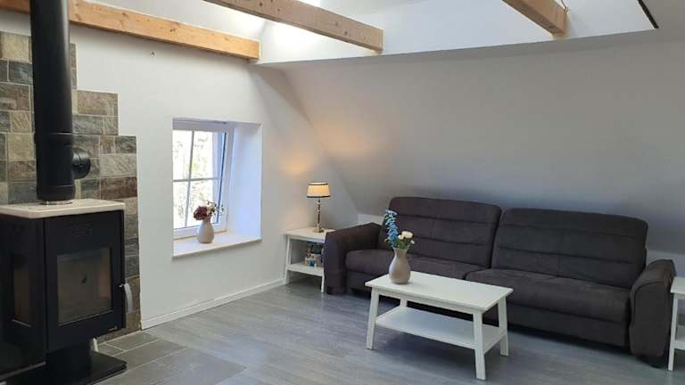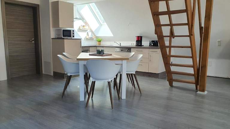 Die Wohnung bietet eine voll ausgestattete Küchenzeile und eine gemütliche Einrichtung. Die Terrasse lädt zum Verweilen ein und ermöglicht es den Gästen, die frische Luft zu geniessen.