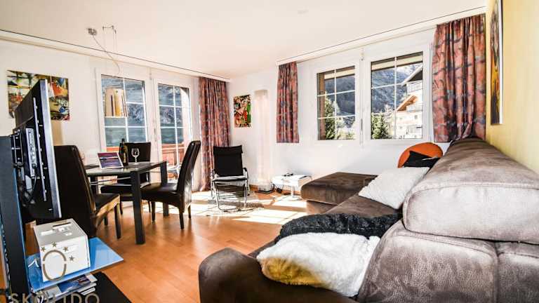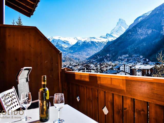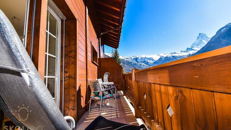 Die Ferienwohnung in Zermatt besticht durch ihre Lage mit einem postkartenwürdigen Ausblick auf das Matterhorn. Sie bietet kostenloses Wifi sowie eine einladende Terrasse.