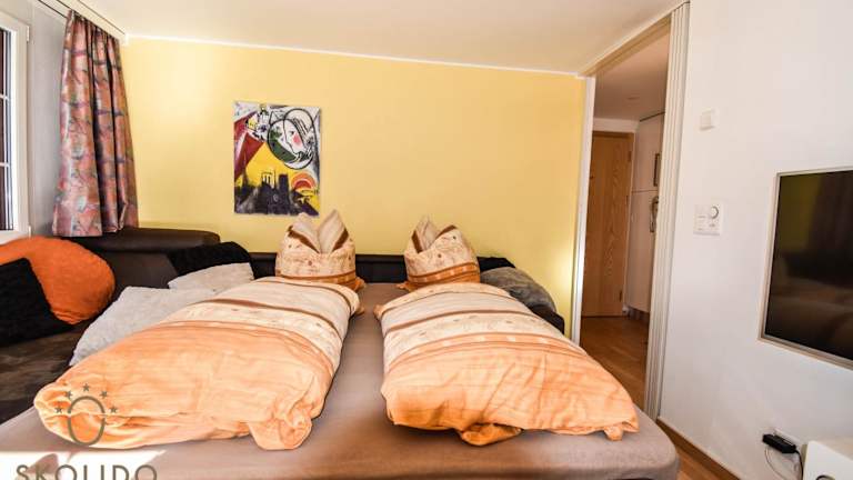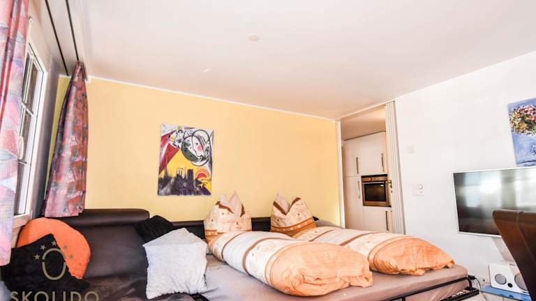 Die Wohnung verfügt über ein Schlafzimmer, ein Wohnzimmer mit einem Satelliten-Flachbild-TV, eine gut ausgestattete Küche sowie ein Badezimmer mit Dusche und Badewanne. Handtücher und Bettwäsche sind vorhanden.
