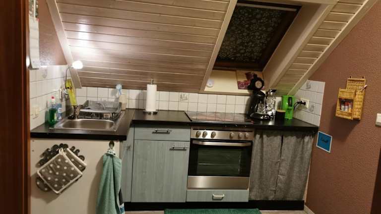 Die Ferienwohnung besteht aus einem Schlafzimmer und einem Wohnzimmer. Sie bietet eine voll ausgestattete Küche mit Kühlschrank und Kaffeemaschine sowie ein Badezimmer mit Dusche und Haartrockner. Handtücher und Bettwäsche werden bereitgestellt.