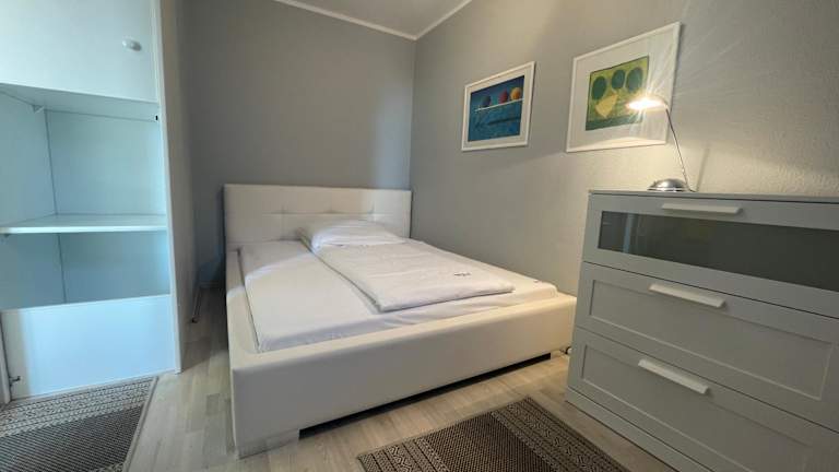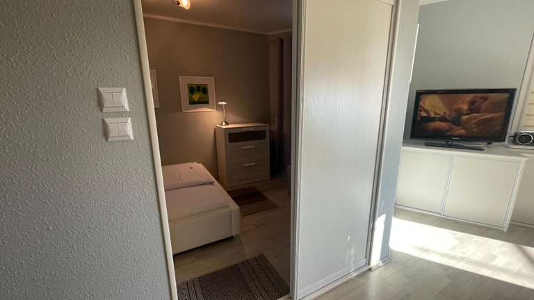 Die Ferienwohnung verfügt über ein Schlafzimmer, ein Wohnzimmer mit einem Flachbild-TV, eine gut ausgestattete Küchenzeile mit Kühlschrank und Mikrowelle sowie ein Badezimmer mit Dusche.
